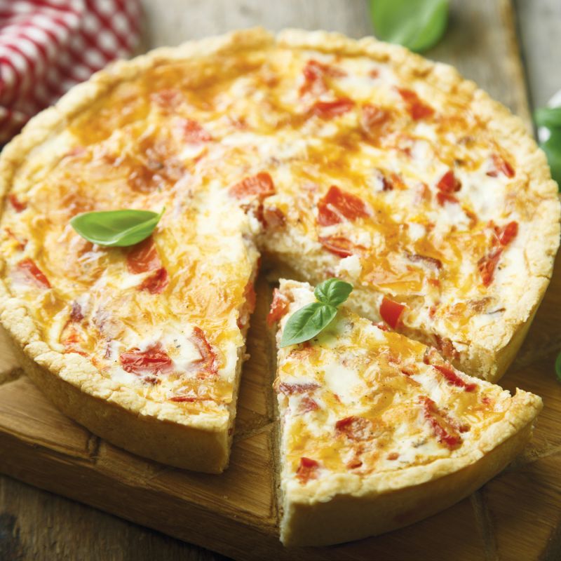 Start assembling the pies with a thin layer of cheese on the bottom of the crusts. Top with a layer of sliced tomatoes and season with salt and pepper. Add a light layer of onion and basil and then the mayo mixture. Repeat until the filling comes within one-quarter inch of the crusts. Cover the final layers with cheese.