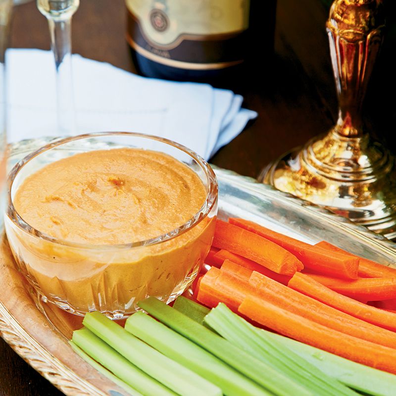Combine all ingredients in the bowl of a food processor and pulse until the mixture is smooth and spreadable. Transfer to a small bowl and serve with cut vegetables such as carrots, celery, and radishes.