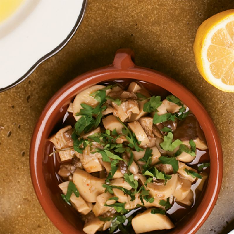 Add the mushrooms, return to a boil, and cook for two minutes. Remove the saucepan from the heat and let the mushrooms cool in the cooking liquid. When cool, strain and transfer to a bowl.