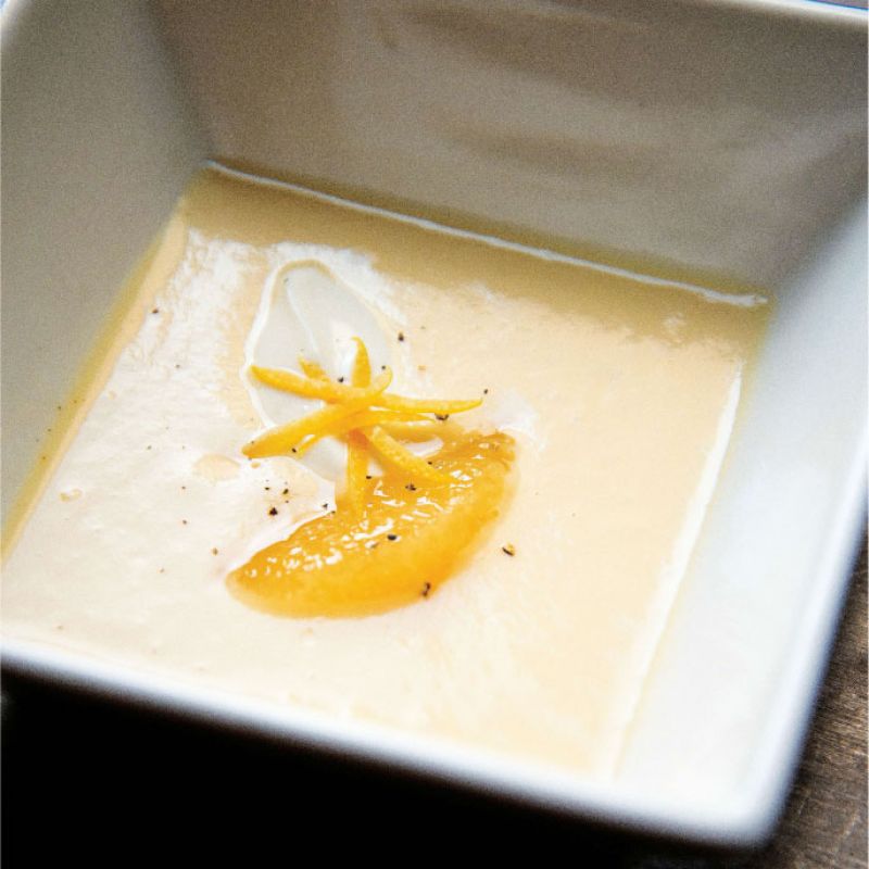 Serve in warm bowls and garnish with a tablespoon of crème fraîche, a sprinkling of black pepper, a grapefruit segment, and a few zest slivers.