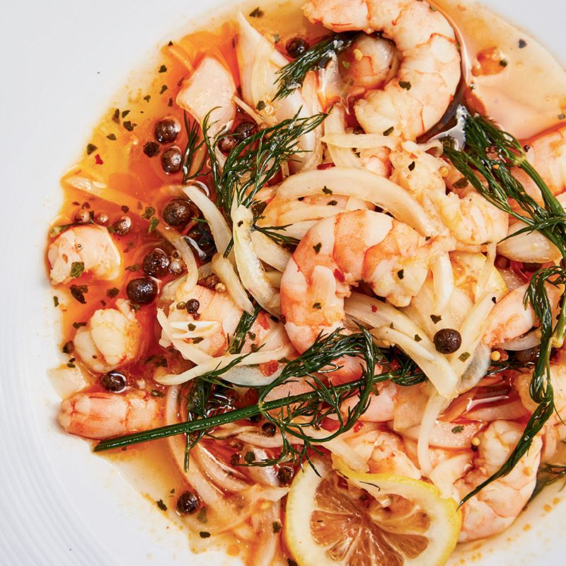 Combine the onions, lemon, vinegar, olive oil, pickling spice, sugar, salt, Tabasco, and dill in a large mixing bowl and mix well. Add the shrimp and toss to combine. Cover and refrigerate for at least 24 hours. Tightly covered, the pickled shrimp will keep for up to a week in the refrigerator.