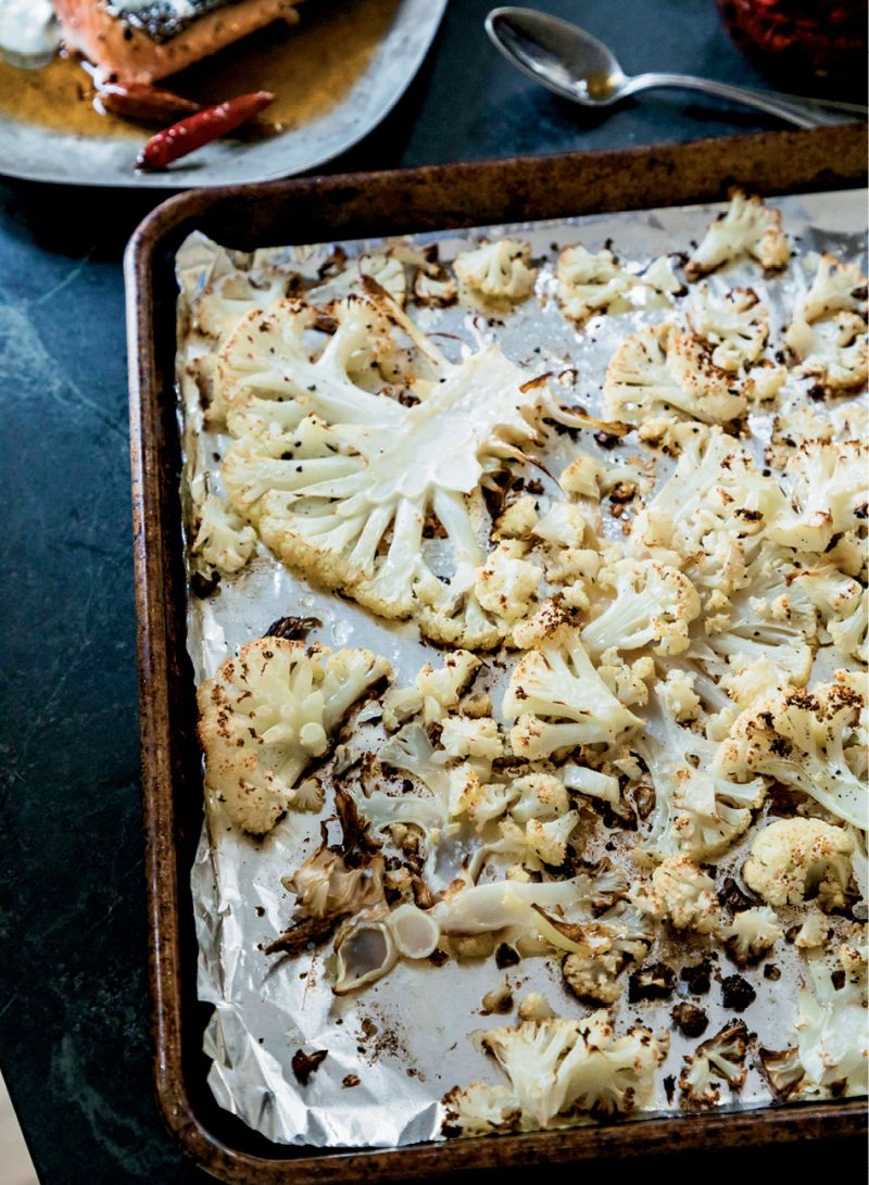Roast the cauliflower in the upper half of the oven for 20 to 25 minutes, or until the edges of some of the cauliflower have browned. Transfer it to a serving bowl and season to taste, if desired, with additional salt and pepper.