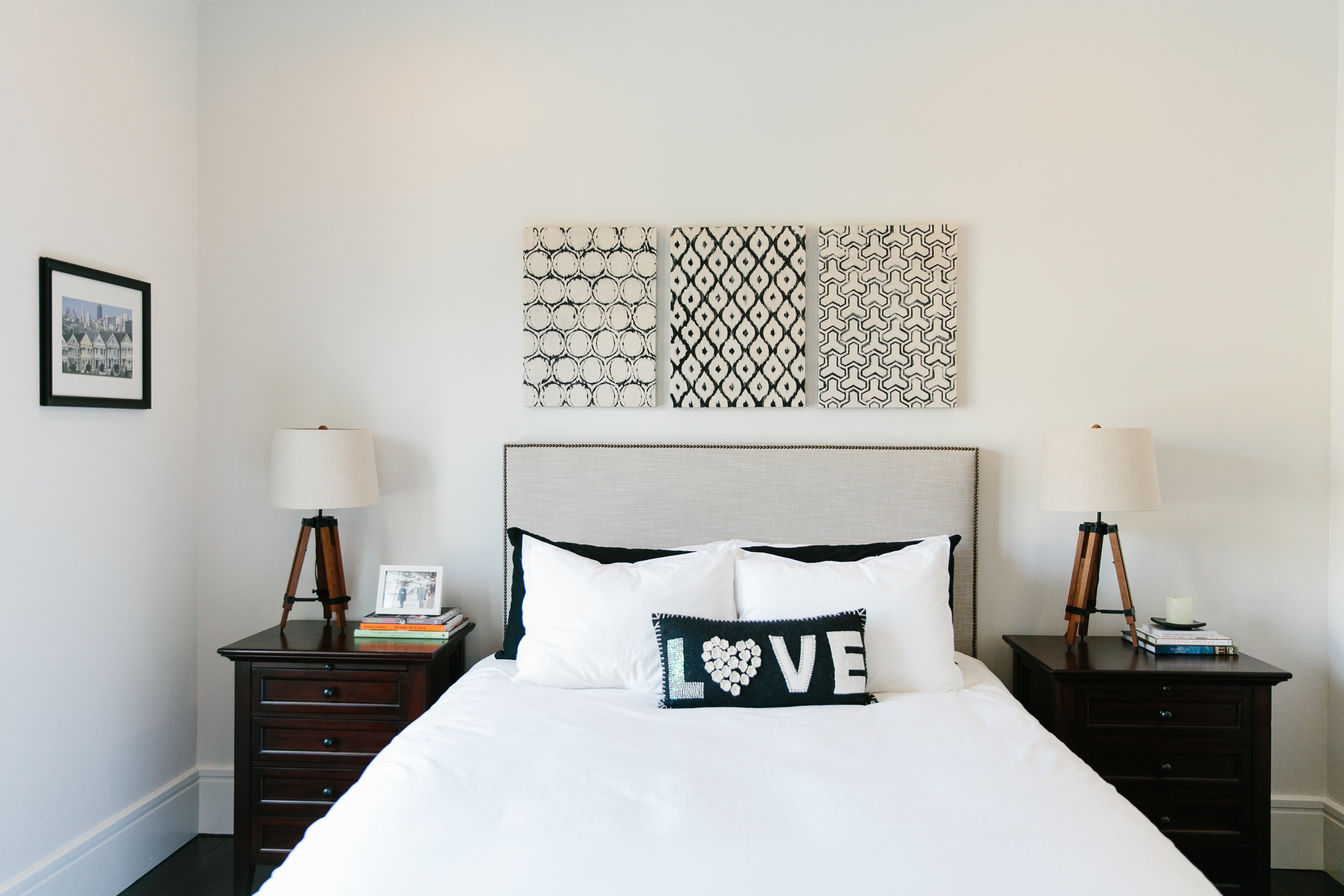 With the bones thus laid, Melissa turned her attention to décor, where she made a break from tradition and let her own personal style reign. “As a designer, I look at so many patterns and textures on a daily basis,” she says. “So when I’m choosing for myself, I go minimal, with lots of black, white, and grey.” This graphic palette lends itself well to an urban aesthetic inspired by San Francisco’s Mission District, her old stomping ground. “It was especially gritty when I moved there in the early 2000s, yet it had this soulful energy with street murals, dive bars, and music venues. I just fell in love with the urban grunginess of it all,” she says.