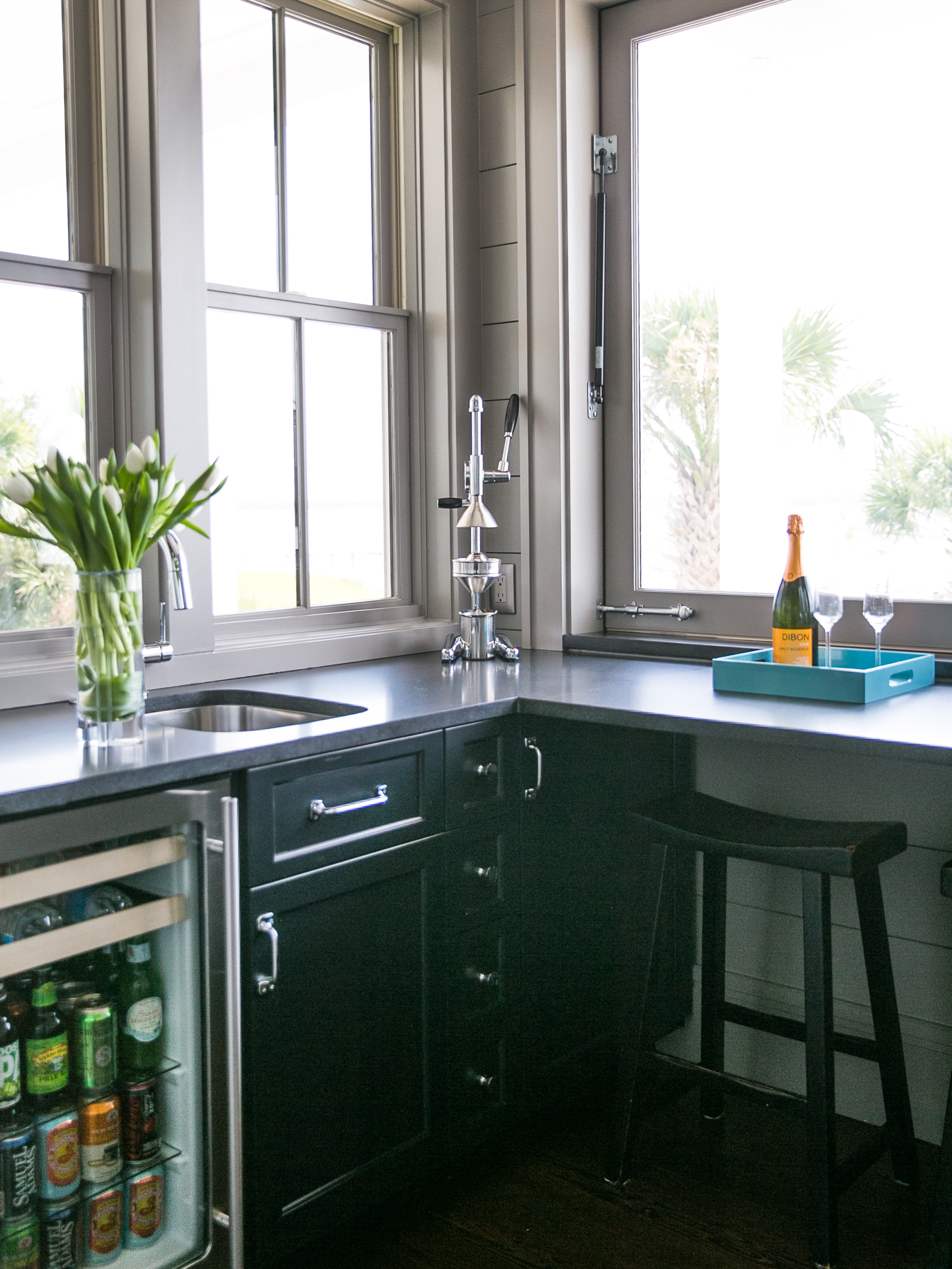On a summer day, you’re likely to find them here, grilling seafood and sipping Moscow mules from stainless steel cups rather than the traditional copper mugs (even the barware adheres to the house color scheme). All in all, she couldn’t be happier that she took the plunge. “I think of my life in San Francisco, and it was just so busy,” she says. “Here, it’s more relaxing. You kinda feel like you’re always on vacation.”