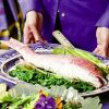 The salad usually comprises a major portion of the meal, but the true crowd-pleaser arrives in the form of a whole red snapper. This preparation may be applied to smaller portions; however, filets and steaks don’t interest me much, perhaps because I love the drama of beautifully presenting an entire fish to a table full of guests.