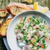 To prepare dish number two, Johnson pan-braises the filets to crisp the skin, which contrasts with the little snapper’s fine, aromatic flesh. Pair the filets with steamed Carolina or Charleston Gold Rice, boiled spring potatoes dressed with olive oil, or tiny farro piccolo with fresh fine herbs, he suggests.