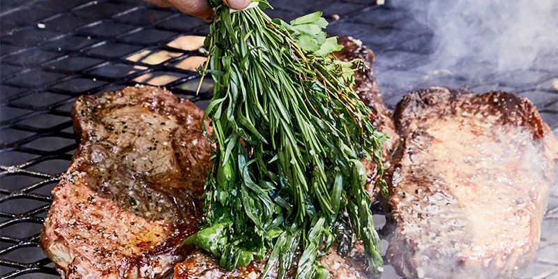Wood-Grilled Rib Eyes with Herb Brush
