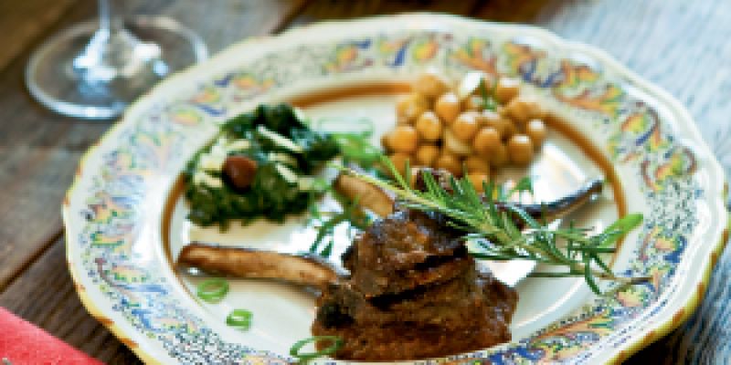 Lamb Chops with Roasted Spring Vegetables in Chianti Reduction